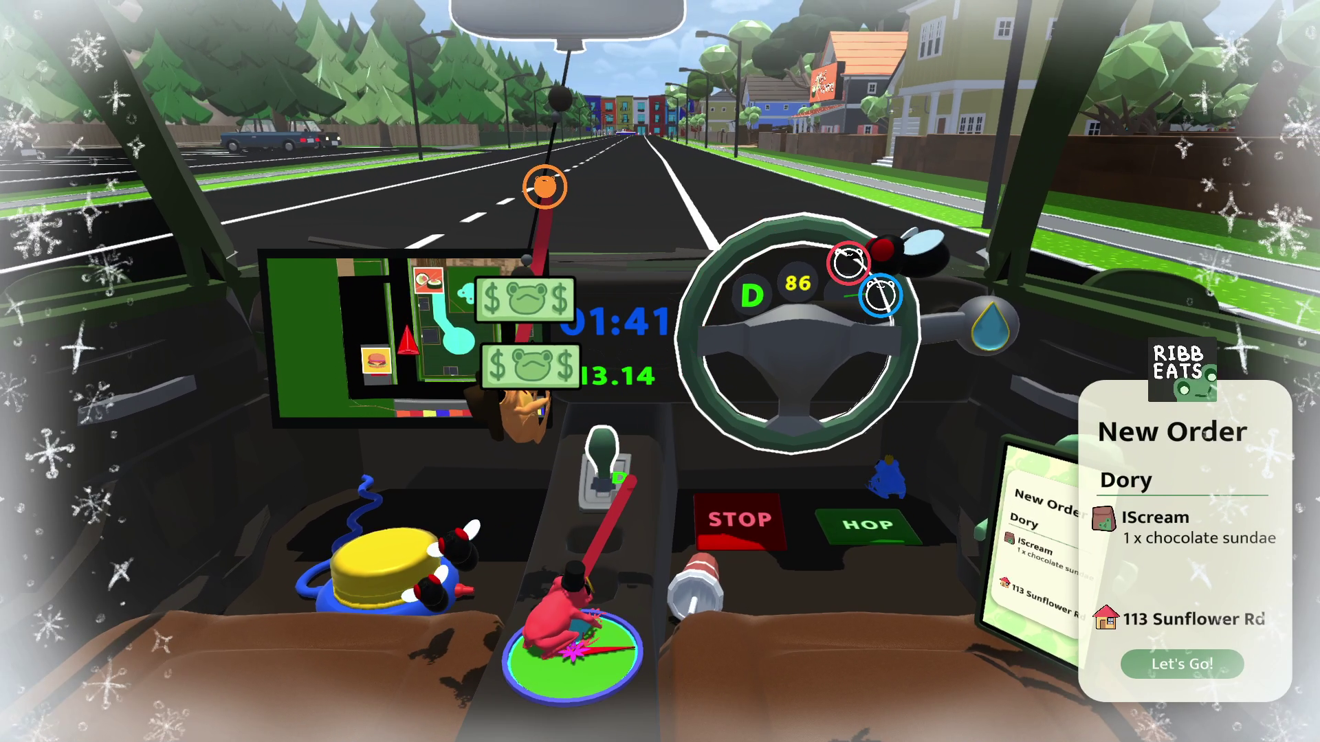 Work with your friends in a crazy co-op game, where you as frogs, drive a human sized car to complete deliveries and earn enough to pay your ever increasing rent.